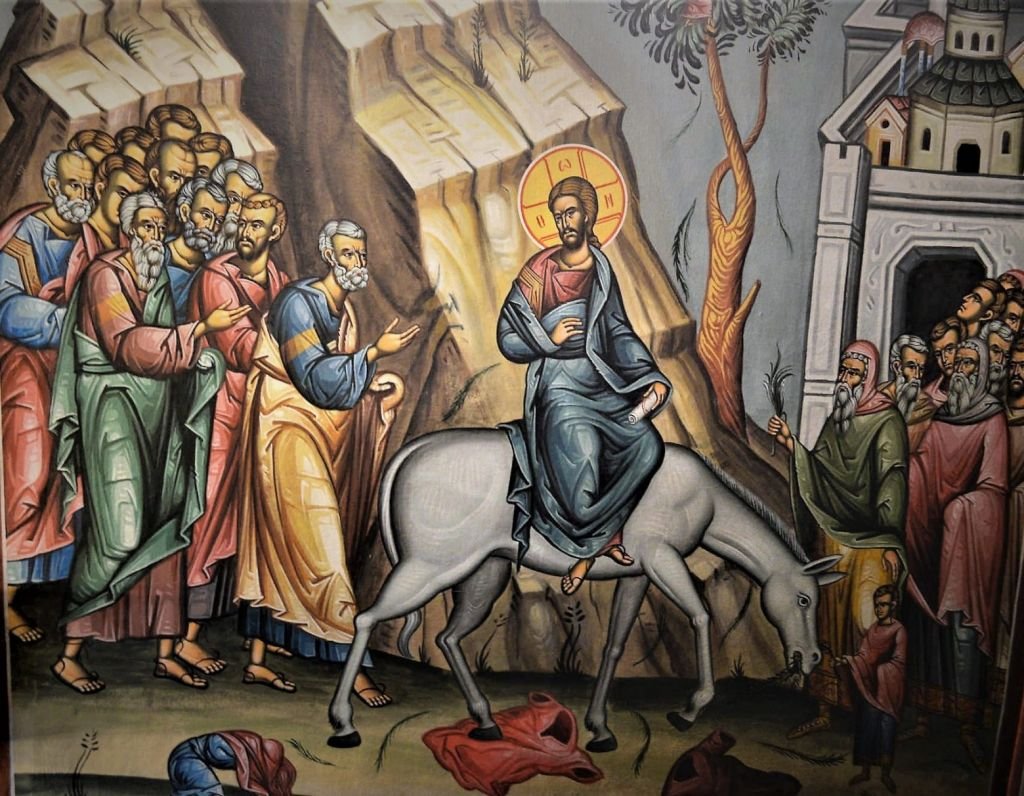 μὴ φοβοῦ, θύγατερ Σιών· ἰδοὺ ὁ βασιλεύς σου ἔρχεται καθήμενος ἐπὶ πῶλον ὄνου.